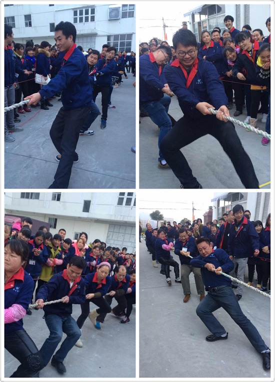 为丰富全体员工的业余文化生活,促进员工之间的交流,发扬团队精神,增强凝聚力,公司于2015年12月29日、30日举办了拔河比赛。